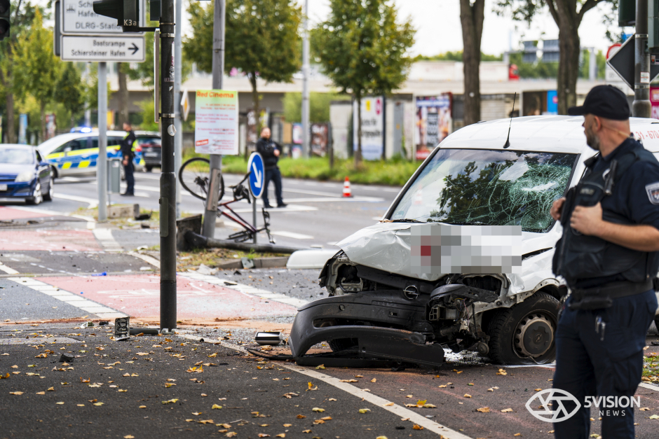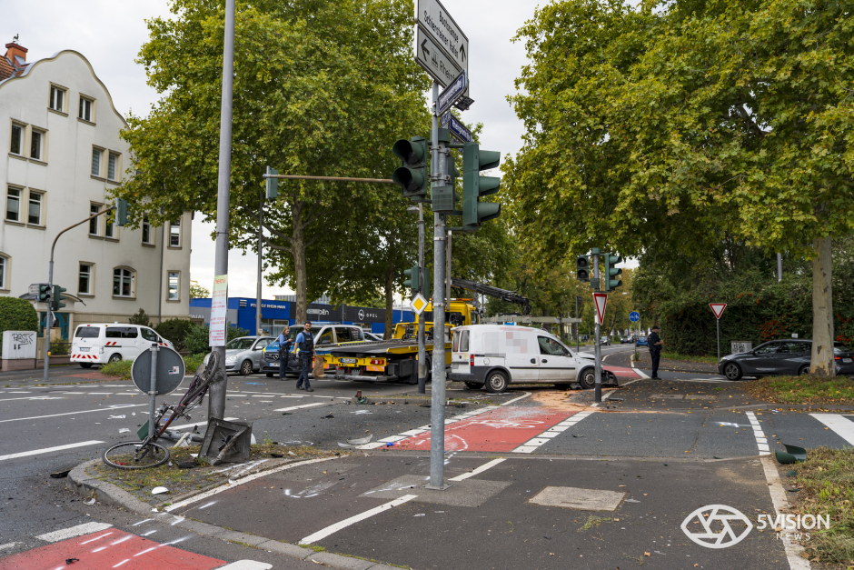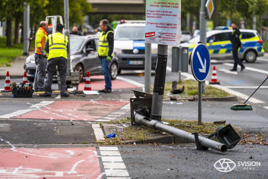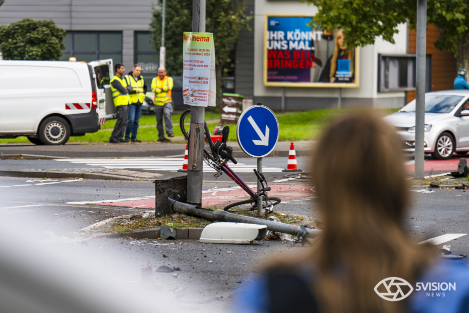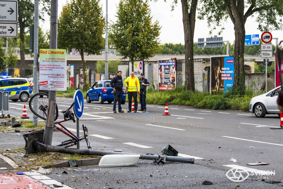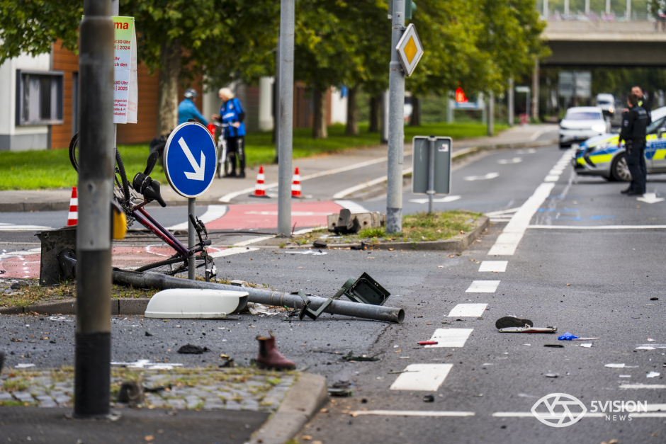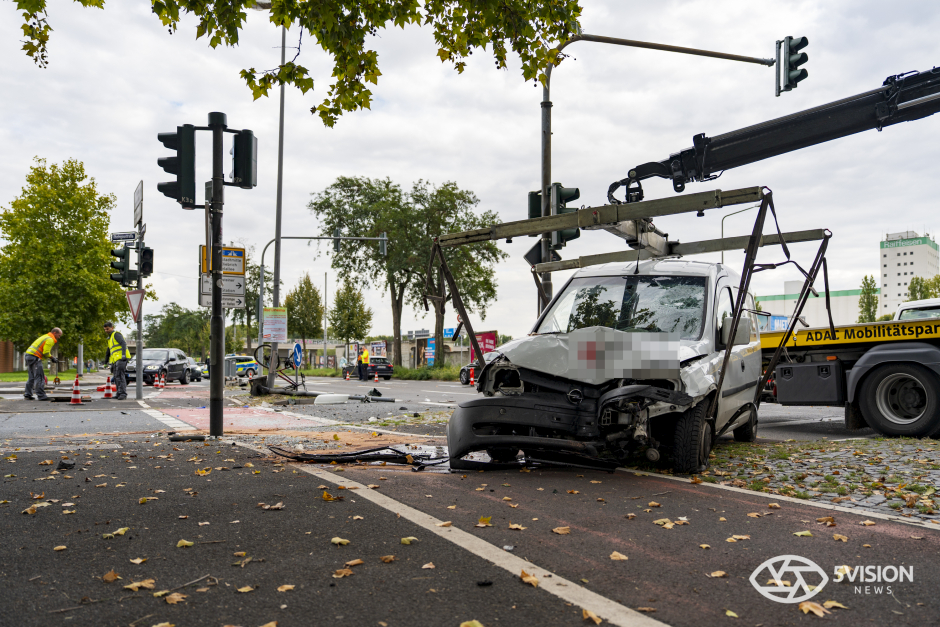 Bei dem Unfall wurde auch die städtische Infrastruktur in Mitleidenschaft gezogen. Der Pkw schleuderte gegen einen Ampelmast und eine Straßenlaterne.