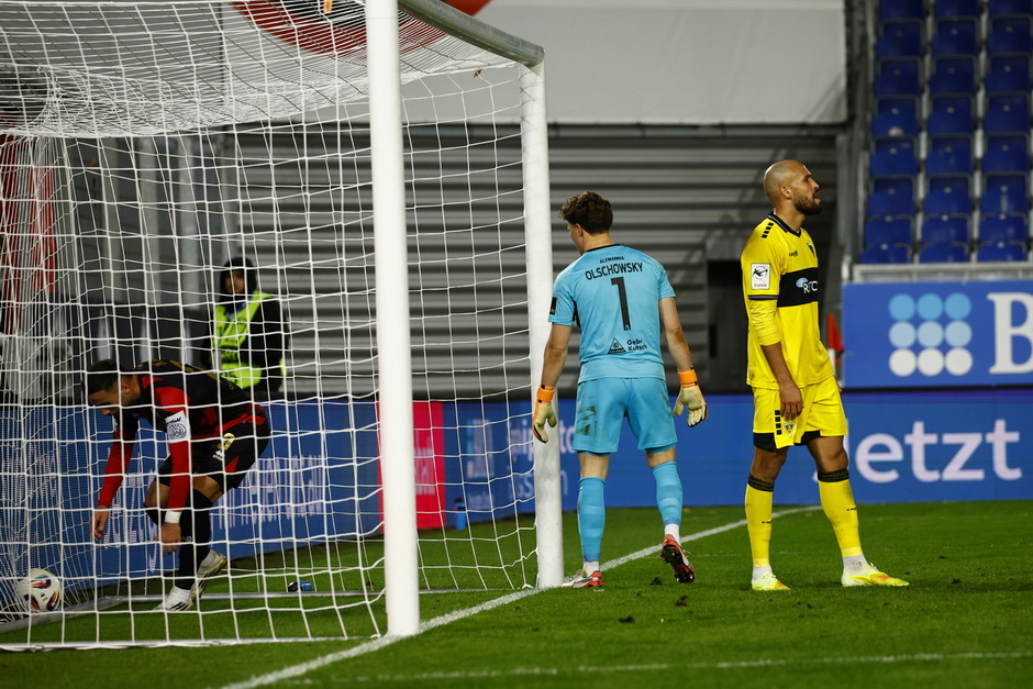Alemannia Aachen: Olschowsky – Nadjombem (46. Heister), Wegmann, Yarbrough, Meyer – Wiebe, Ademi (46. Lorch) – Bahn (c), Schroers (75. Richter) – Gindorf (90.+4 Elekwa), Sulejmani (62. Strujic).