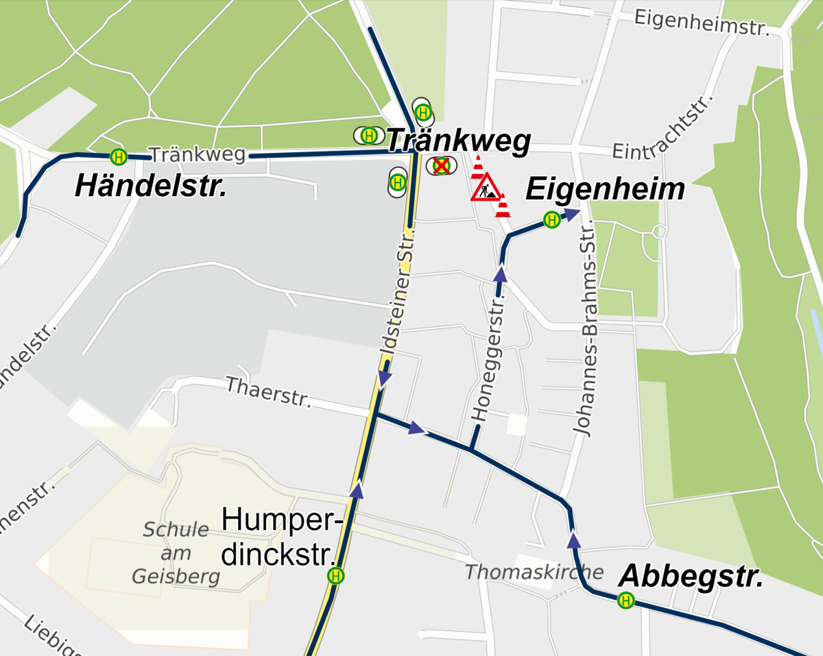 Fahrten in Richtung Steinberger Straße sind von der Umleitung nicht betroffen.