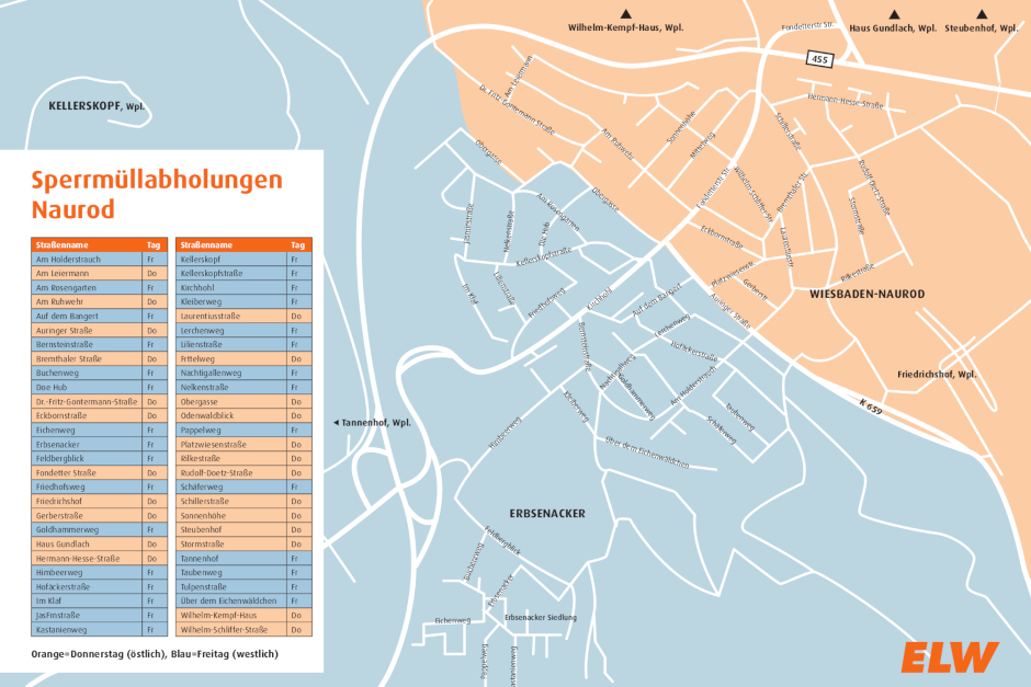 Die Entsorgungsbetriebe der Landeshauptstadt Wiesbaden (ELW) rücken wieder an um Sperrmüll abzuholen an. Am Donnerstag, 19. Februar, und Freitag, 20. Februar, wird in Naurod ausgesonderter Hausrat abgeholt. Da der nördlichste Wiesbadener Vorort als einziger Stadtteil feste Sammeltermine (Februar, Mai, August und November) hat, ist das Aufkommen meist groß.