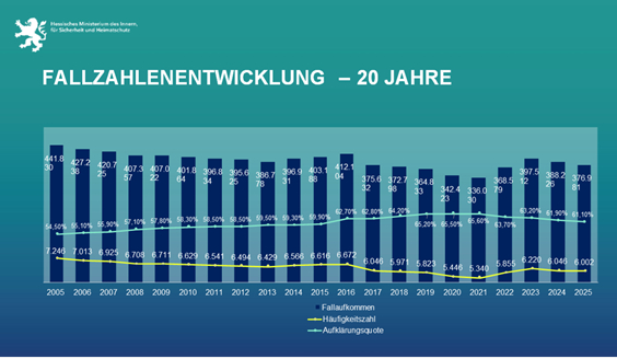 Poseck: „Nach 2024 (-2,3%) bestätigt sich unsere konsequente Sicherheitspolitik. Hessen ist 2025 sicherer geworden.“