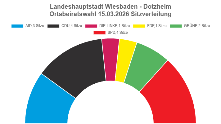 Trotz des knappen prozentualen Vorsprungs der CDU spiegelt sich das enge Rennen in der Sitzverteilung wider. Der neue Ortsbeirat Dotzheim setzt sich wie folgt zusammen: