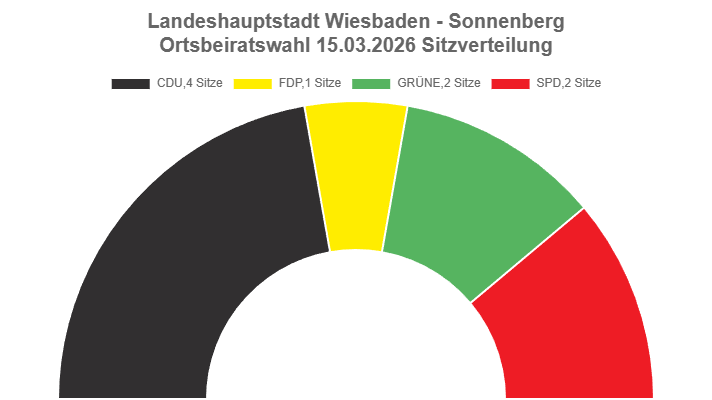 Im Sonnenberger Ortsbeirat wurden insgesamt 9 Sitze vergeben. Durch das starke prozentuale Abschneiden ergibt sich für das künftige Gremium folgende Mandatsverteilung: