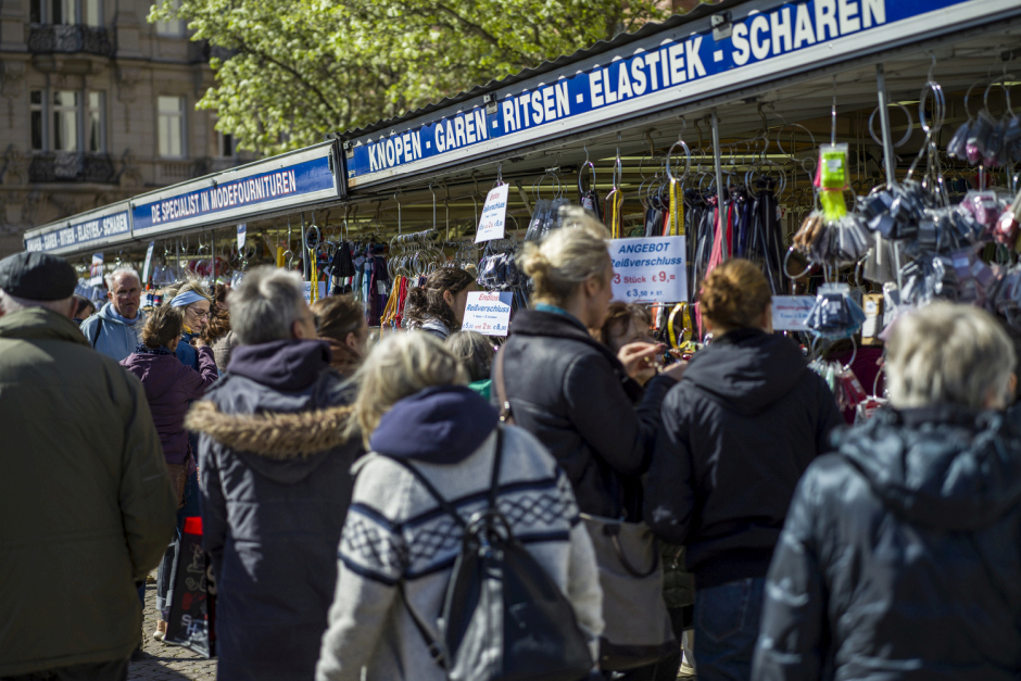 Sonntag: Zum großen Finale bleibt es trocken und heiter bei angenehmen 15 Grad. Beste Voraussetzungen für den Stoffmarkt und den anschließenden Shopping-Bummel.