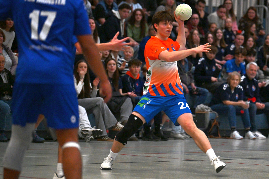 Einige Unsportlichkeiten waren für den Einzel-Schiedsrichter schlichtweg bei dem Tempo des Spiels nicht zu erkennen. In dem sich fortsetzenden Krimi stand es 24:24 in der 52. Spielminute, 25:25 in der 55. Minute und 27:27 in der 58. Minute. In dieser Phase gelang es Oskar Städler mit seinen Toren immer wieder den Ausgleich herzustellen. Erst dreißig Sekunden vor Schluss konnte die TSG Münster II zum Endstand auf 28:29 stellen.