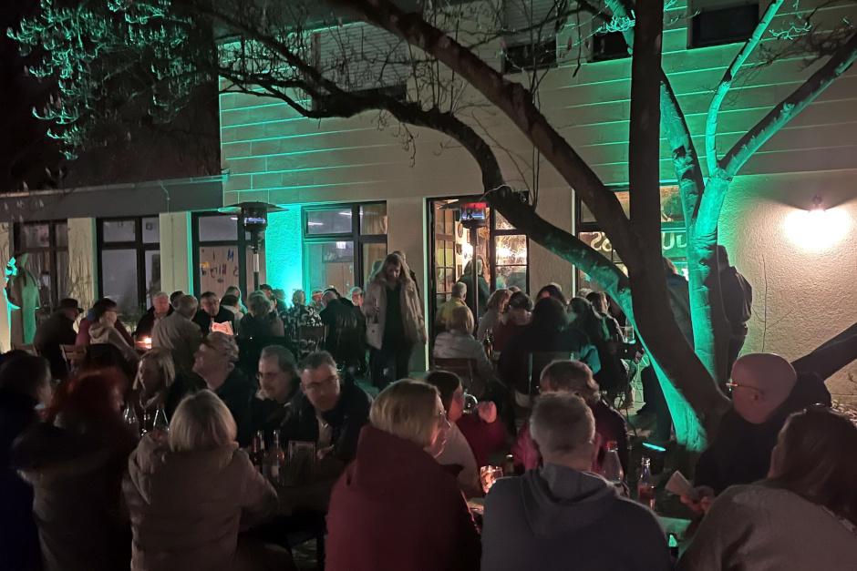 Ein besonderer Hingucker war die steinerne Statue des heiligen Patrick im Außenbereich, die zu Ehren Irlands den ganzen Abend über in leuchtendem Grün erstrahlte. „Ein wirklich schöner Abend“, so das einhellige Fazit der Besucher an den Tischen.