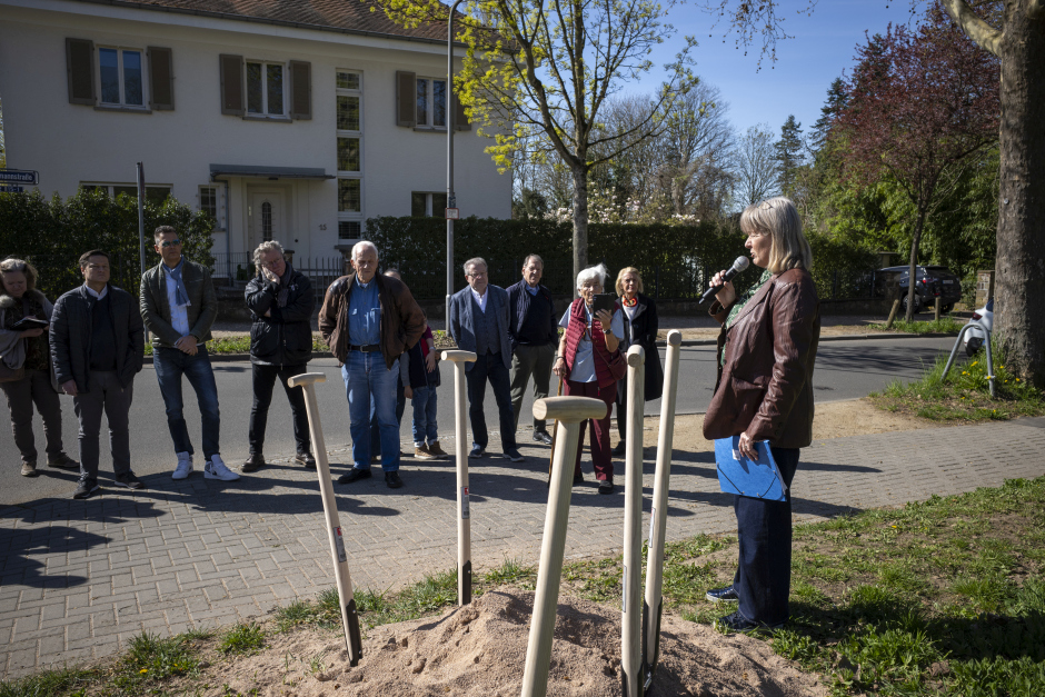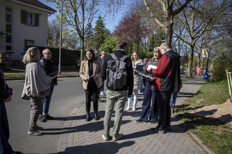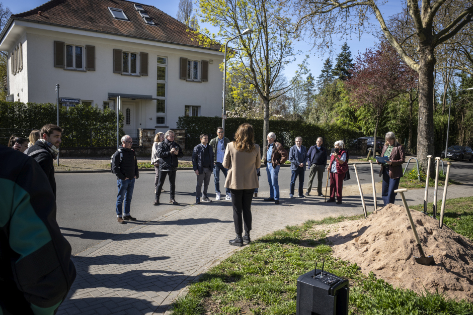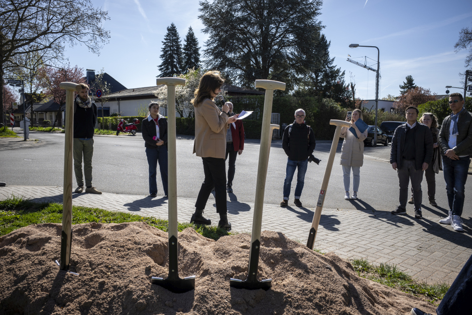 Das Komponistenviertel in Wiesbaden ist bekannt für seine historischen Villen und prächtigen Gärten. Doch wer öffentliche Orte zum Verweilen, Spielen oder für nachbarschaftliche Begegnungen suchte, fand dazu bislang nur wenige Plätze. Das ändert sich nun. Am heutigen Dienstag, 7. April, setzte Wiesbadens Bürgermeisterin Christiane Hinninger (Die Grünen) gemeinsam mit Vertretern der Stadt den ersten Spatenstich für den neuen Quartiersplatz an der Ecke Abeggstraße/Schumannstraße.