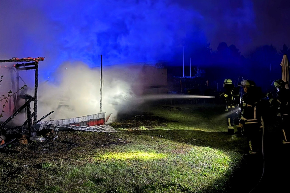 Trotz des schnellen Löscherfolgs konnte das Gartenhaus nicht mehr gerettet werden, es brannte vollständig aus. Nach ersten vorläufigen Schätzungen der Polizei beläuft sich der entstandene Sachschaden auf rund 30.000 Euro.