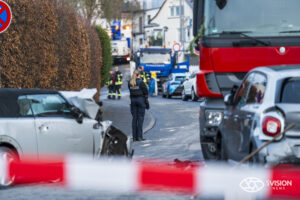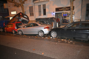 Spektakulärer Busunfall in Wiesbaden-Biebrich: Medizinischer Notfall führt zu Massenkarambolage mit neun Autos am Montag, 8. Dezember 2025