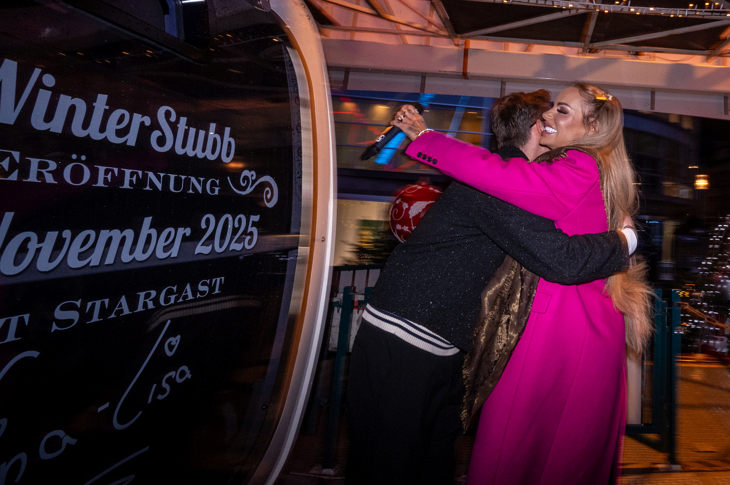 Der Beginn in die Wiesbadener Adventszeit hätte spektakulärer nicht sein können. Am Montagnachmittag wurde um 17:00 Uhr die beliebte WinterStubb auf dem Mauritiusplatz offiziell eröffnet. Hunderte Besucher trotzten den kalten Temperaturen, um Teil des feierlichen Auftakts zu sein! Es war ein glamouröser gemütlicher Abend. Der Höhepunkt des Openings war der Auftritt von Schlagerlegende Heino, der den Startschuss für die WinterStubb 2025/26 gab. Mit seinem musikalischen Auftritt sorgte der Star für Gänsehautmomente und heizte dem Publikum ordentlich ein. Neben der Musik-Ikone gaben sich weitere bekannte Gesichter die Ehre. Bereits am frühen Abend sorgte TV-Star Claudia Obert für Glamour. Ab 19:30 Uhr reihten sich weitere Prominente aus der Region ein: Bei den beliebten Meet & Greets konnten Fans Influencer wie Gina-Lisa Lohfink, Aytug Gün, Hubert Fella, Dascha Carriero und Mona Buruncuk treffen. Der Andrang war riesig und so wurden Tausende Selfies gemacht. Sängerin Lisa Bund trat mit ihrer Band auf und rundete den gelungenen Abend ab. Trotz des November-Wetters herrschte in der urigen und gemütlichen WinterStubb eine Atmosphäre voller Wärme und Freude auf die Adventszeit. Blickfang der WinterStubb ist auch in diesem Jahr das 45 Meter hohe Riesenrad. Seine beheizten Gondeln bieten ab sofort einen atemberaubenden Panoramablick über die festlich beleuchtete Innenstadt und den Sternschnuppen Markt – Winterzauber garantiert! Auch Heino ließ sich die spektakuläre Rundfahrt nicht nehmen. Die Besucher können sich zudem täglich auf regionale Köstlichkeiten freuen: Heiße Getränke, hessische Spezialitäten wie Handkäse und Worscht sowie süße Leckereien laden zum Verweilen ein. Nach diesem grandiosen Auftakt hat die WinterStubb auf dem Mauritiusplatz ab sofort täglich geöffnet und lädt alle Wiesbadener und Gäste dazu ein, sich eine Auszeit im winterlichen Trubel zu gönnen. Die täglichen Live-Acts ab 18:00 Uhr sorgen weiterhin für beste Unterhaltung!