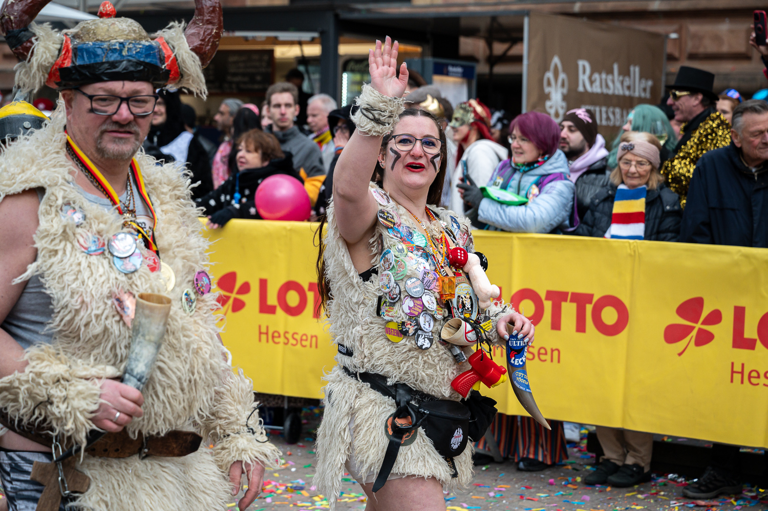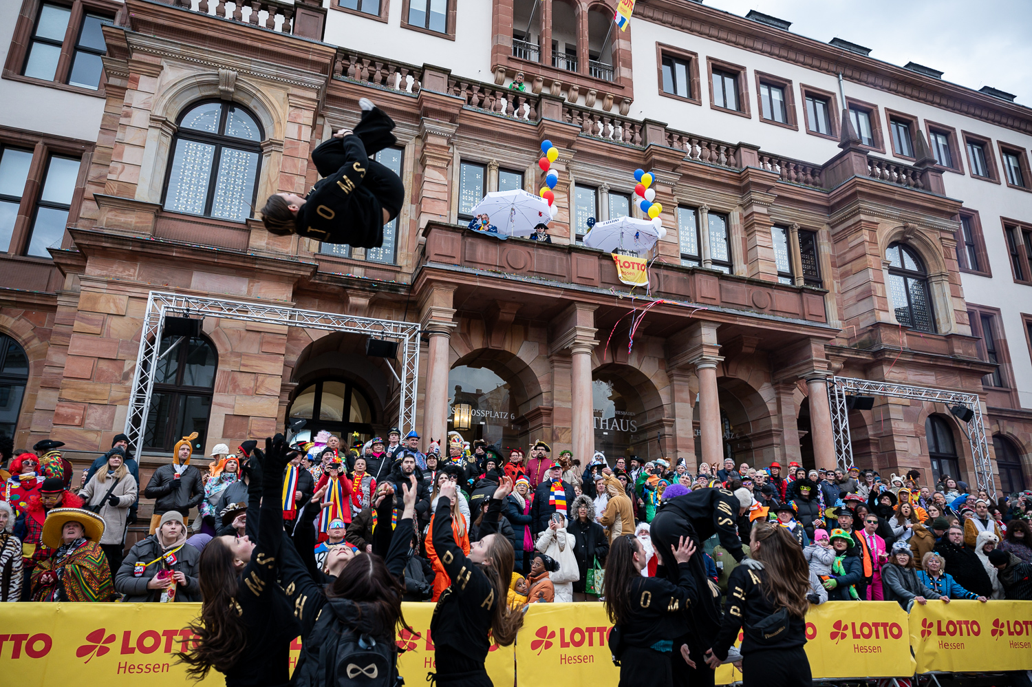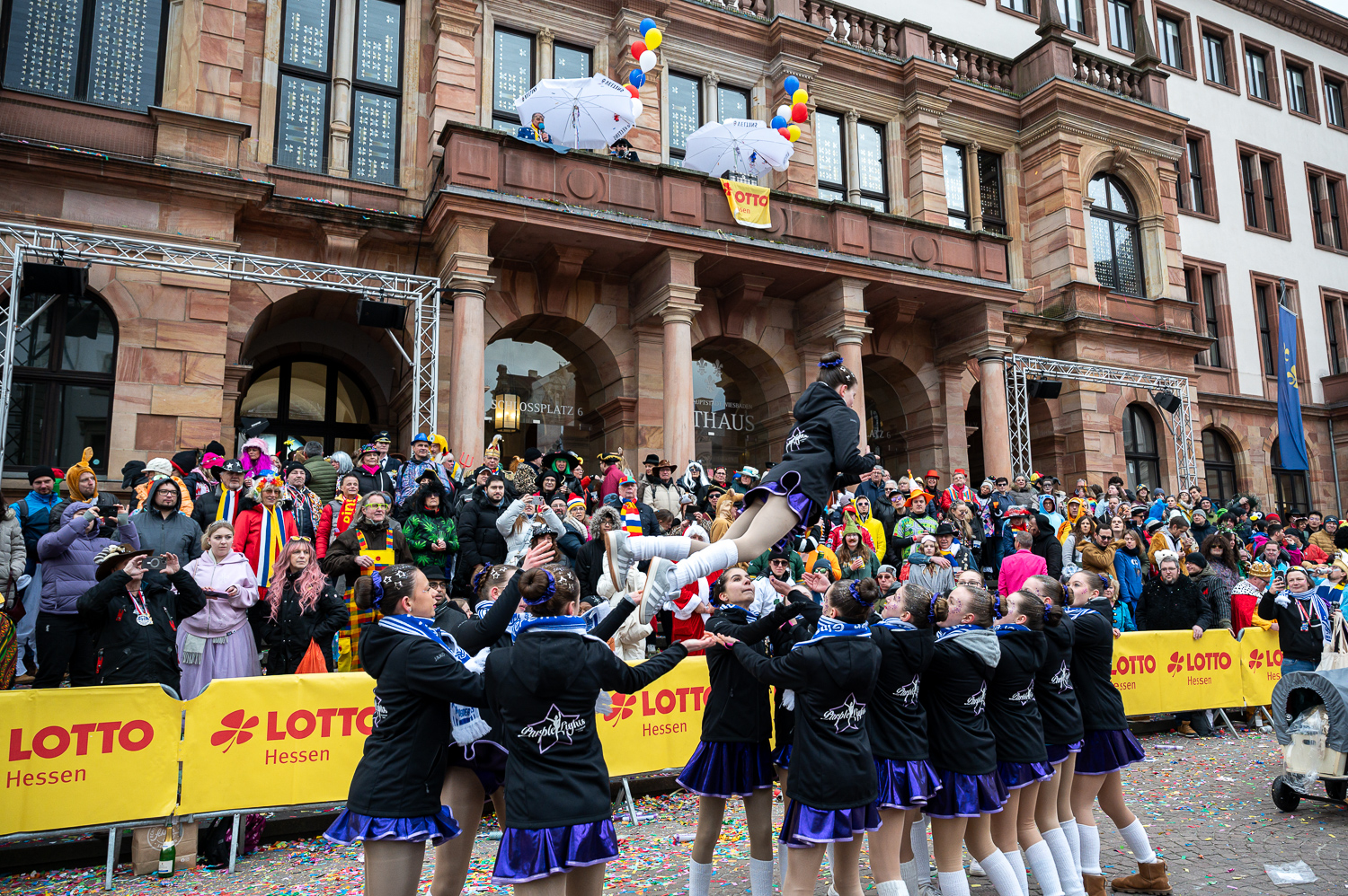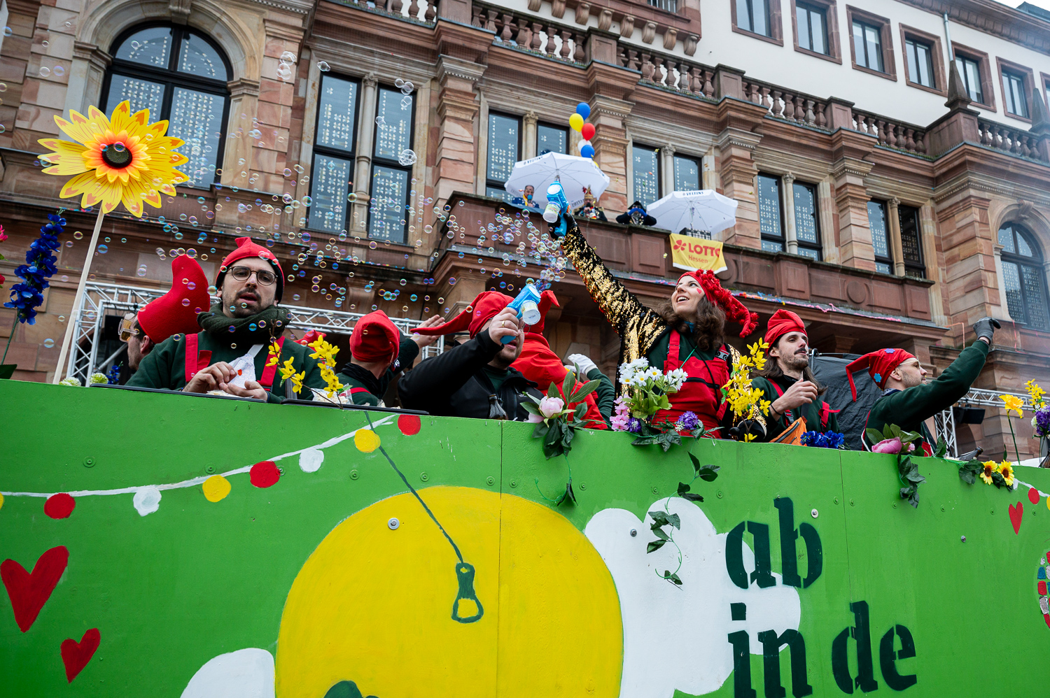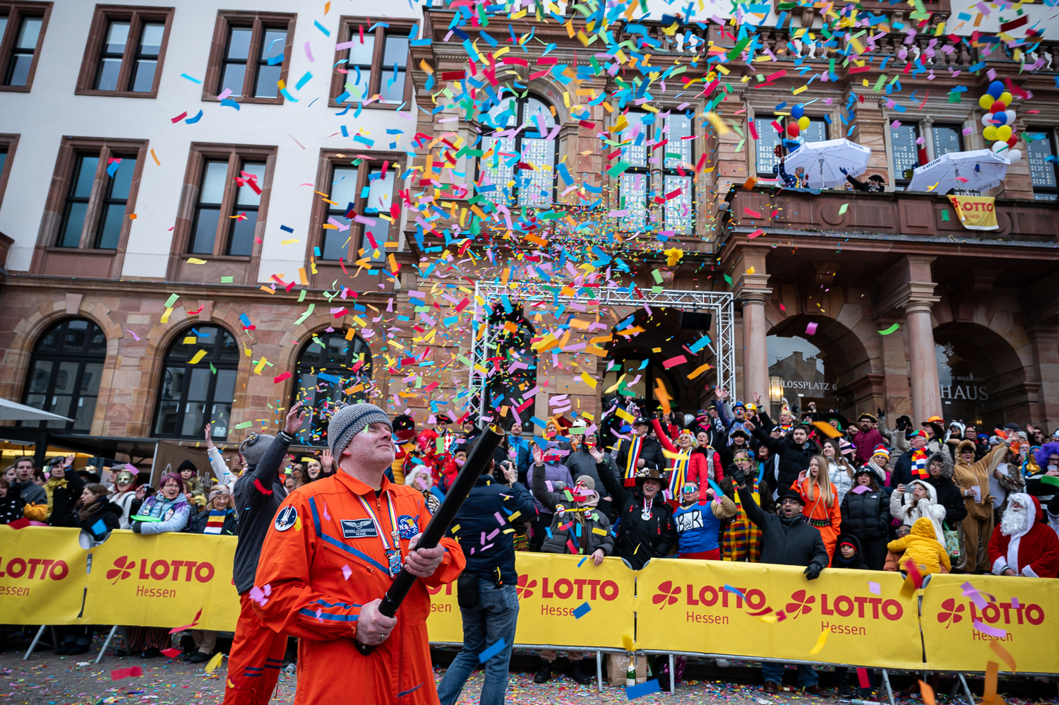 Fastnachtszug auf dem Schlossplatz in Wiesbaden am Sonntag, 15. Februar 2026