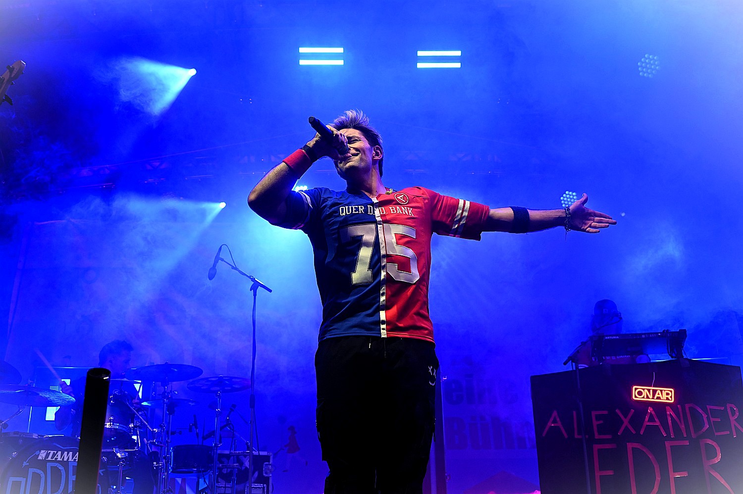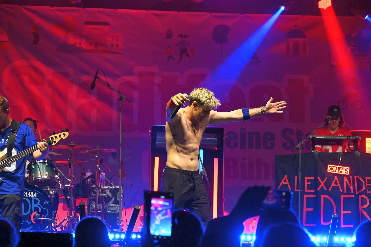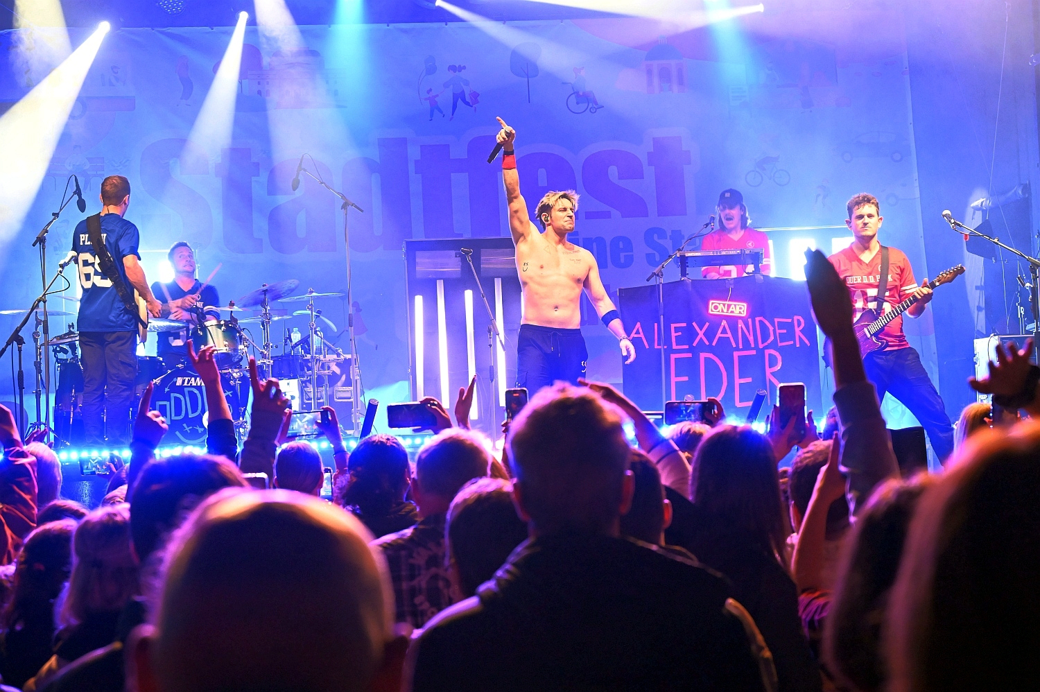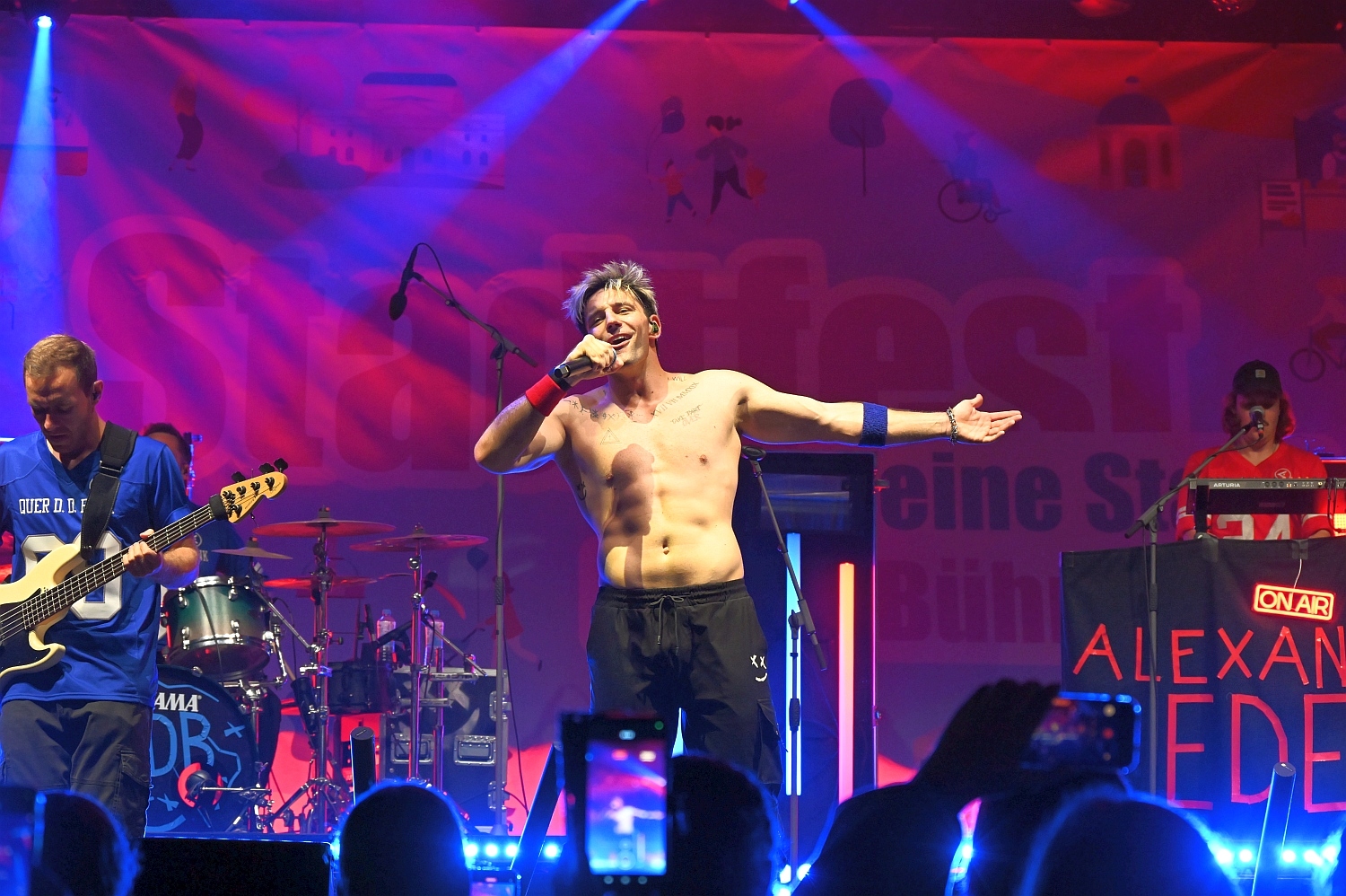 Nach einem schönen Stadtfestnachmittag stand am Abend ein besonderes Highlights an. Das Dern’sche Gelände wurde zur Konzert-Bühne. Der Singer-Songwriter Alexander Eder sorgte mit seinem energiegeladenen Auftritt für ausgelassene Partystimmung mitten in der Wiesbadener Innenstadt. Der Österreicher der durch seine unverwechselbare Mischung aus Pop, Rock und gefühlvollen Balladen bekannt ist, spielte Songs wie “Spürst du das auch“, “1 Mal um die Welt“, “Jetzt geht’s mir besser“ und “Herzinfarkt“. Mit seiner markanten Stimme, viel Bühnenpräsenz und direktem Draht zum Publikum begeisterte er nicht nur eingefleischte Fans, sondern auch viele Neuentdecker. Besonders seine TikTok-Bekanntheit machte ihn auch für jüngere Besucher zum Star des Abends. Und so durfte Alexander Eder nicht ohne Zugabe die Bühnen verlassen. Mit seiner Mischung aus modernen Klängen, ehrlichen Texten und Charme hat er die Herzen der Wiesbadener erobert.